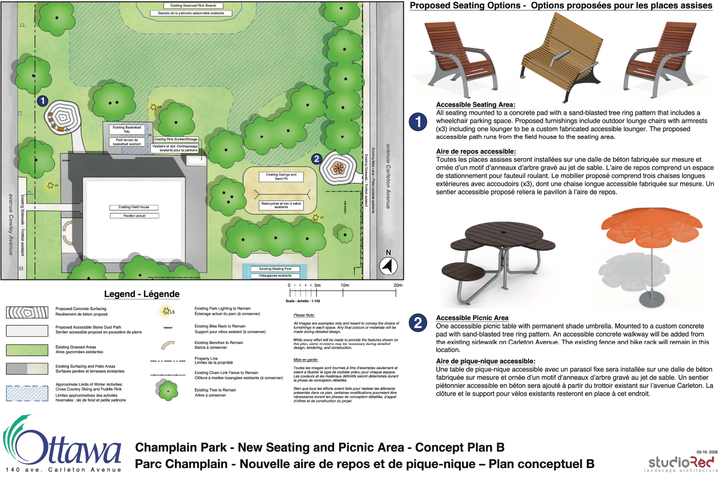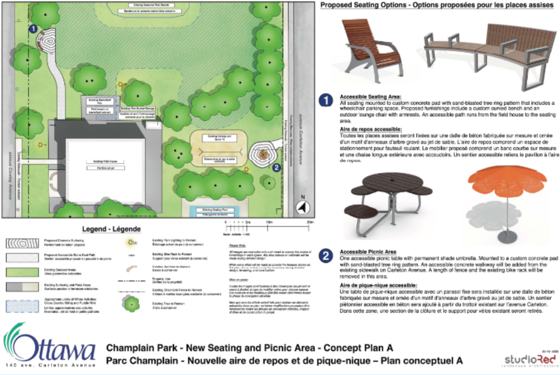 Veuillez noter que le plan final du parc peut différer du plan conceptuel présenté en raison des résultats de la consultation publique, des modalités techniques et des contraintes financières ou d’approvisionnement.